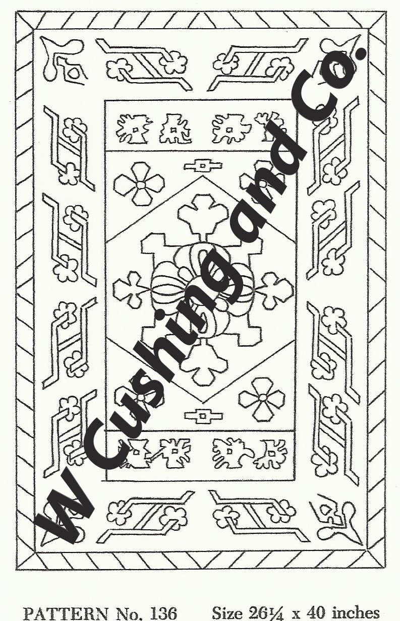 Frost’s Pattern No. 136, 26 1/4″ x 40″, GV 136. Any color scheme will look great. We have a large variety of dyed wools to make your oriental rug truly colorful and bright. *Embellishments such as Arctic Rays, Fur, Roving, Burly Spun or Metallic Yarn for a 3D effect to add to your pattern! Perfect way to be creative!