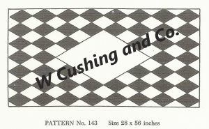 Frost’s Pattern No. 143, 28″ x 56″, GV 143. Perfect geometric to add in the middle. Embellishments are fun to add, such as Arctic Rays or Metallic Yarn for a 3D effect. Some beautiful dyed wools to use are Granite, Vintage Paisley Red, Garnet, and Sapphire. Mix Textured wool with Dyed wool for a complete look. Please click the link to view all our in-stock textures. https://dev.wcushing.com/product-category/textured-wool/