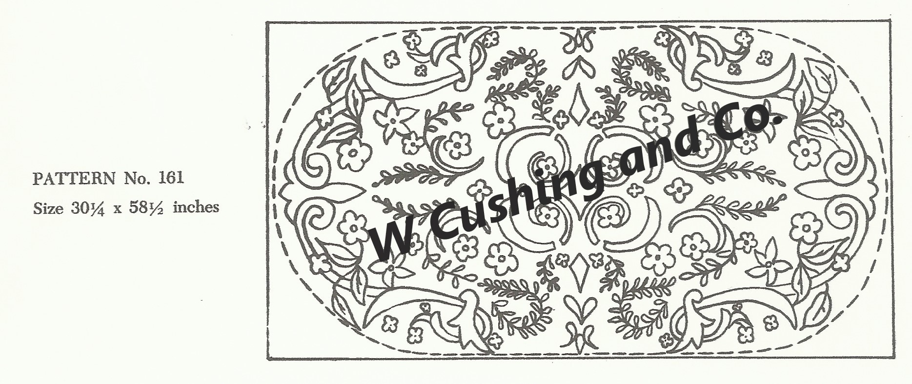 Frost’s Pattern No. 161, 30 1/4″ x 58 1/2″, GV 161. Great pattern in any color! Can be very creative pattern with use of colors from our texture wools and hand crafted dyed wools. Fun to use velvet, metallics, burly spun yarns and your stash!