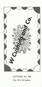 Frost’s Pattern No. 182, 18″ x 33″, GV 182. This pattern and subjects were from E.S. Frost’s floral collection. Can be very creative pattern with use of colors from our texture wools and hand crafted dyed wools. Fun to use velvet, metallics, burly spun yarns and your stash!