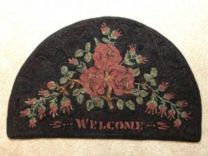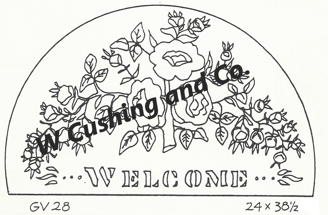 Frost’s Pattern No. 28, Welcome Half Round, 24″ x 38 1/2″, GV 28. E.S. Frost pattern. A classic Welcoming Rug from the late 1800’s to early 1900’s. Half Round pattern…. a beautiful floral! Great vintage rug pattern to use our custom dyed wools–Better Than Roses, Lisannes Sky, Yellow Topaz, Twinkle, Imari Chinese Green and so much more. *Embellishments such as Velvets, Arctic Rays, Fur, Roving, Burly Spun or Metallic Yarn for a 3D effect to add to your pattern! Perfect way to be creative! Mix Textured wool with Dyed wool for a complete look. Please click the link to view all our in-stock textures. https://dev.wcushing.com/product-category/textured-wool/