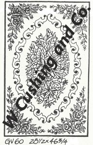 Frost’s Pattern No. 60, 28 1/2″ x 46 3/4″, GV 60. A true classic floral from late 1800’s- early 1900’s time period. Embellishments are fun to add, such as Arctic Rays or Metallic Yarn for a 3D effect.