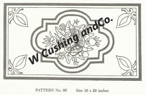 Frost’s Pattern No. 66, 16″ x 29″, GV 66. This pattern and subjects were from E.S. Frost’s floral collection. Can be very creative pattern with use of colors from our texture wools and hand crafted dyed wools. Fun to use velvet, metallics, burly spun yarns and your stash!