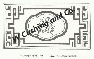 Frost’s Pattern No. 87, 18″ x 33 3/4″, GV 87. Such a great border! Beautiful floral from the turn of the century. Embellishments are fun to add, such as Fur, Arctic Rays or Metallic Yarn for a 3D effect. Some dyed wools to try are Better Than Roses, Jacob’s Green, Best of Blue, Maine Sky, Imari Jade and more! Mix Textured wool with Dyed wool for a complete look. Please click the link to view all our in-stock textures. https://dev.wcushing.com/product-category/textured-wool/