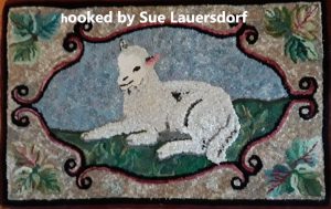 Rug example hooked by Sue Lauersdorf. Other has no name and is from the archives of Joan Moshimer.