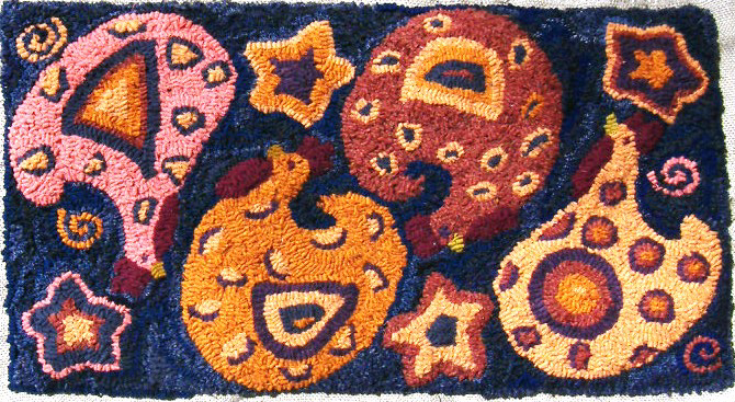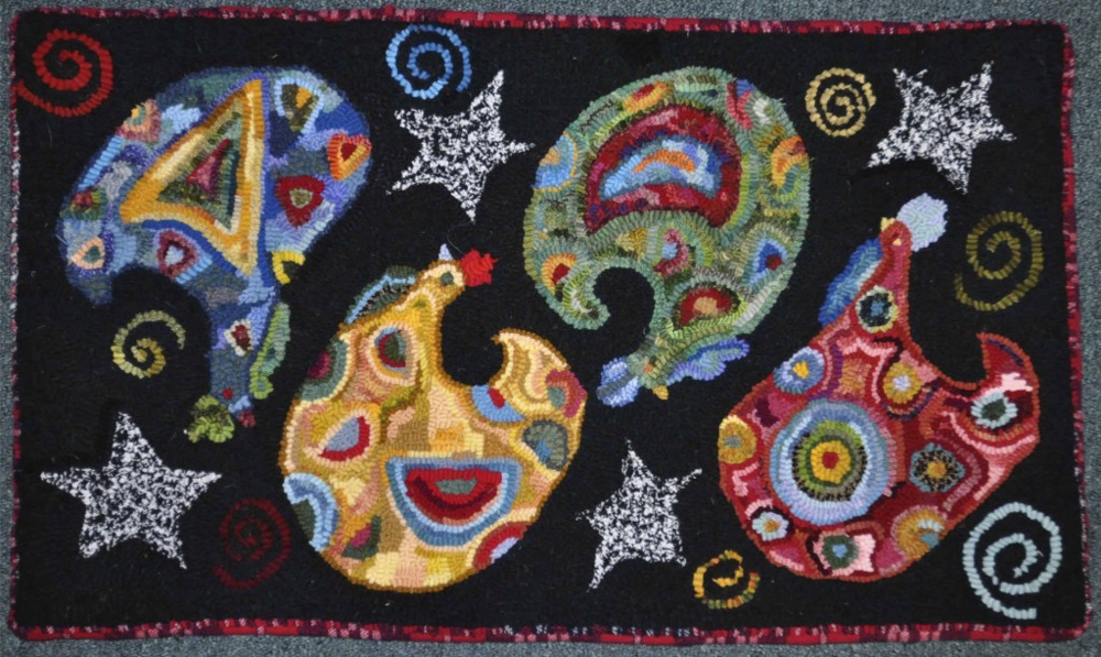 **First example by Lisanne Miller. There are no names of who hooked the second rug (with black background).