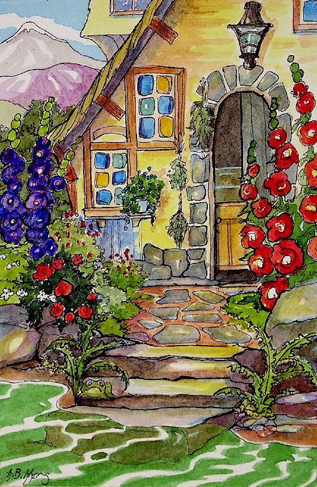 Gardener’s Cottage, 27 1/2 x 18, Based on the artwork of Alida Akers…Part of the Storybook Cottage Series.