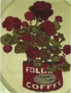 Geraniums, 24″ x 30″. Embellishments are fun to add, such as Arctic Rays or Metallic Yarn for a 3D effect.