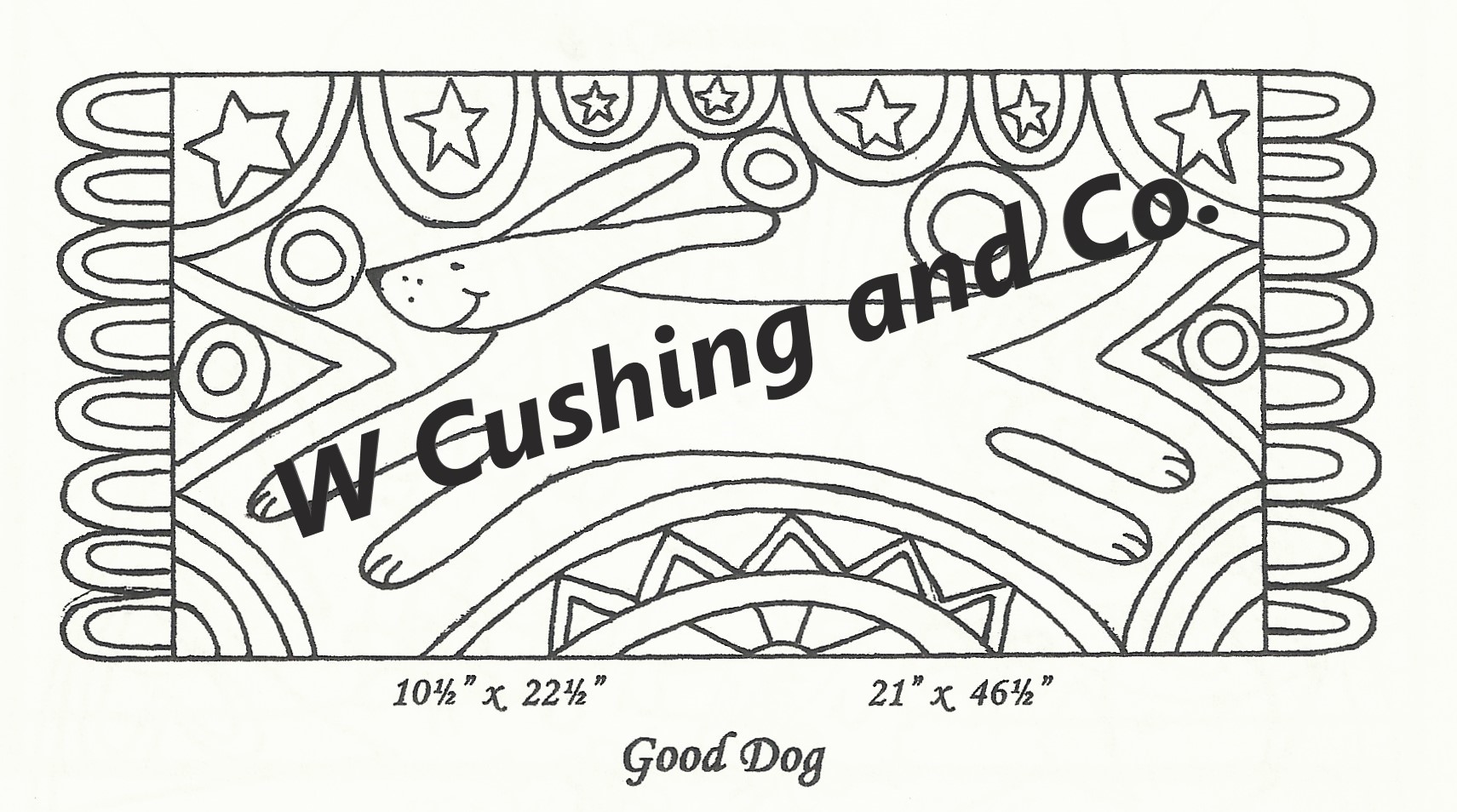 Good Dog Small, pattern by Primitive Grace, 10 1/2″ x 22 1/2″.  This pattern is available in another size–see separate listing.  A great runner design!   *Embellishments such as Arctic Rays, Fur, Roving, Burly Spun or Metallic Yarn for a 3D effect to add to your pattern! Perfect way to be creative!  Try our dip spots hand dyed wool for shading effects.  We have a large variety of hand dyed wools for your rug such as Jacob’s Blue and Brown, Yellow Topaz, Ye Old Red and more!  Mix Textured wool with Dyed wool for a complete look.  Please click the link to view all our in-stock textures.  https://dev.wcushing.com/product-category/textured-wool/