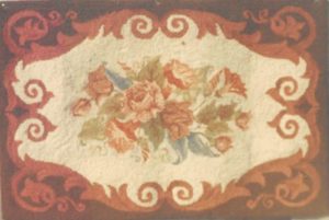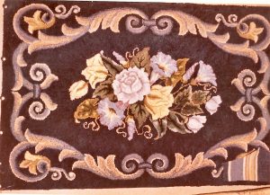 This wonderful floral rug is Gretchen OSV 679 by Pearl McGown 24″x 36″. It is a beautiful floral that embellishments are fun to add, such as Arctic Rays or Metallic Yarn for a 3D effect. Try our dip spots hand dyed wool for shading effects. We have a large variety of hand dyed wools for your rug such as Soft as Petals, Better Than Roses, Jacob’s Gold, Zinnia Garden and more!