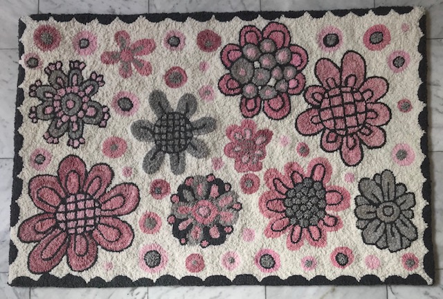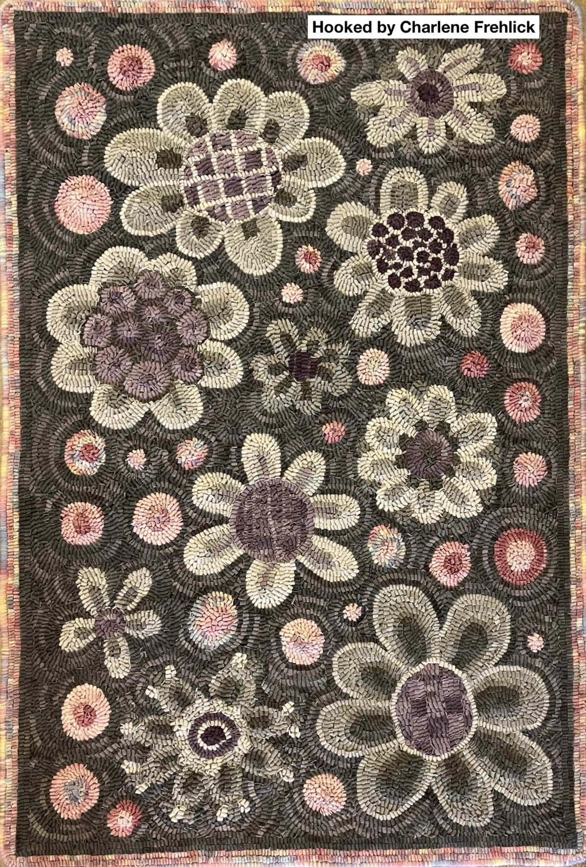 *Colored rug pictured was hooked by Elizabeth Laub (light background) and Charlene Frehlick. Very pretty and creative!
