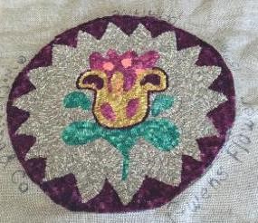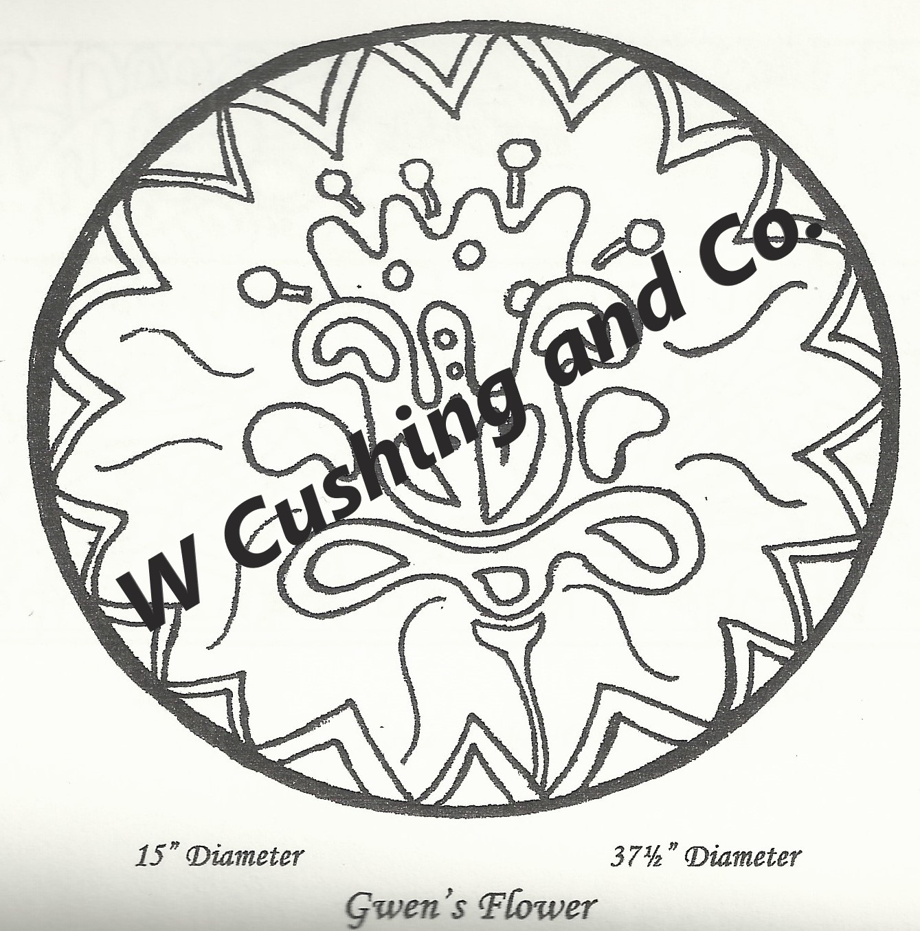 Gwen’s Flower Small, pattern by Primitive Grace, 15 inch diameter. What a cute floral pattern. This pattern is available in another size–see separate listing. Try fur, velvets or boucle yarn as mixed media in your rug. Try Razzle Dazzle, Mother of Pearl, Yellow Topaz, Purple Passion and any of our beautiful Imari dyed wools. Mix Textured wool with Dyed wool for a complete look. Please click the link to view all our in-stock textures. https://dev.wcushing.com/product-category/textured-wool/