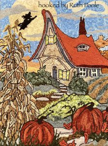**Example hooked by Nancy Gingrich. Note: she altered her pattern and left out the witch! Another, by Ruth Poole