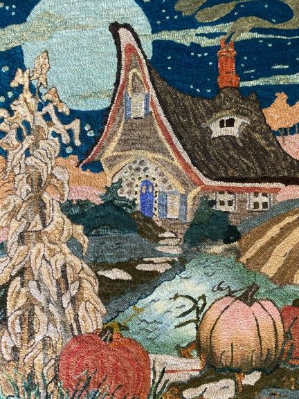 **Example hooked by Nancy Gingrich. Note: she altered her pattern and left out the witch! Another, by Ruth Poole