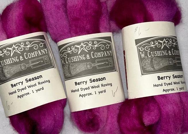 Hand dyed roving, Berry Season goes great with Sky and Sea and Garden Greens