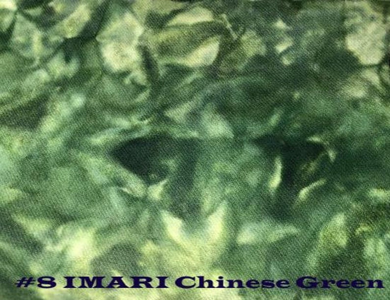 The Imari Dyed Wools.   Hand Dyed Wool, eighth of the IMARI Dyed Wools, Chinese Green,  Created by Joan Moshimer’s Studio.