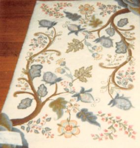 Happy Hours OSV 887 by Pearl McGown 26″ x 43″ is this beautiful floral pattern. It is a beautiful crewel that embellishments are fun to add, such as Arctic Rays or Metallic Yarn for a 3D effect. Try our dip spots hand dyed wool for shading effects. We have a large variety of hand dyed wools for your rug such as Glacier, Better Than Roses, Jacob’s Peach, Zinnia Garden and more!