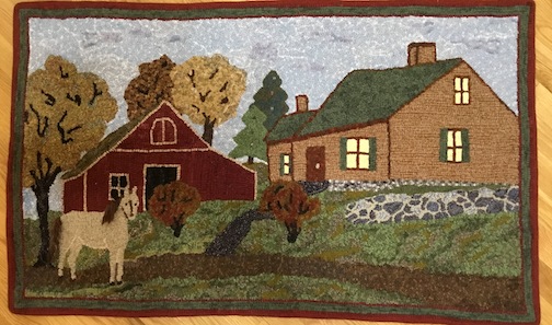 This wonderful pictorial rug Hills Homestead OSV 325 by Pearl McGown 30″ x 49″. So many different ways to color plan, great for your next camp or class! Great Stash Buster!!! Fun to use velvet, metallics, burly spun yarns and your stash! Try our dip spots hand dyed wool for shading effects. We have a large variety of hand dyed wools for your rug such as Falling Leaves, Bowl of Cranberries, Fall Mum’s, William Morris Leaves, Grassy Greens and more! Mix Textured wool with Dyed wool for a complete look. Please click the link to view all our in-stock textures. https://dev.wcushing.com/product-category/textured-wool/