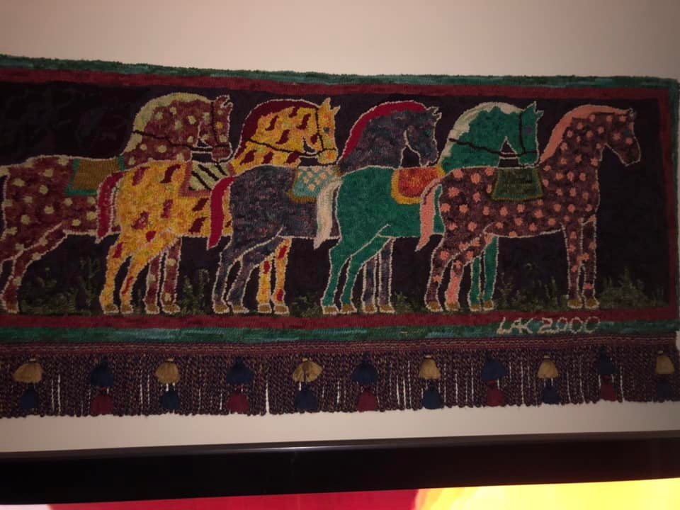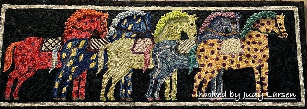 Horse of Norah, M 406, 18″ x 48″. Runner pattern from Joan Moshimer’s Studio/ W Cushing and Co.