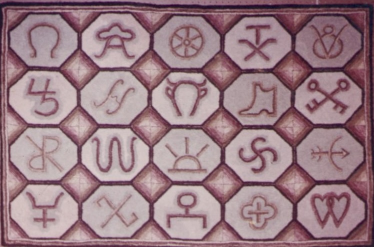 **we do not kit our patterns.  Please Note–the photos of these rugs are from the notebooks and archives of Joan Moshimer.  There are no names of who hooked the rug.
