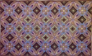 This beautiful geometric rug is Illusion (small) by Pearl McGown OSV 716A 28″ x 46″. This pattern is available in two other sizes. See others on our website. From the Vault. . .**Illusion** This beautiful geometric rug is a stash reducer! *Embellishments such as Arctic Rays, Fur, Roving, Burly Spun or Metallic Yarn for a 3D effect to add to your pattern!