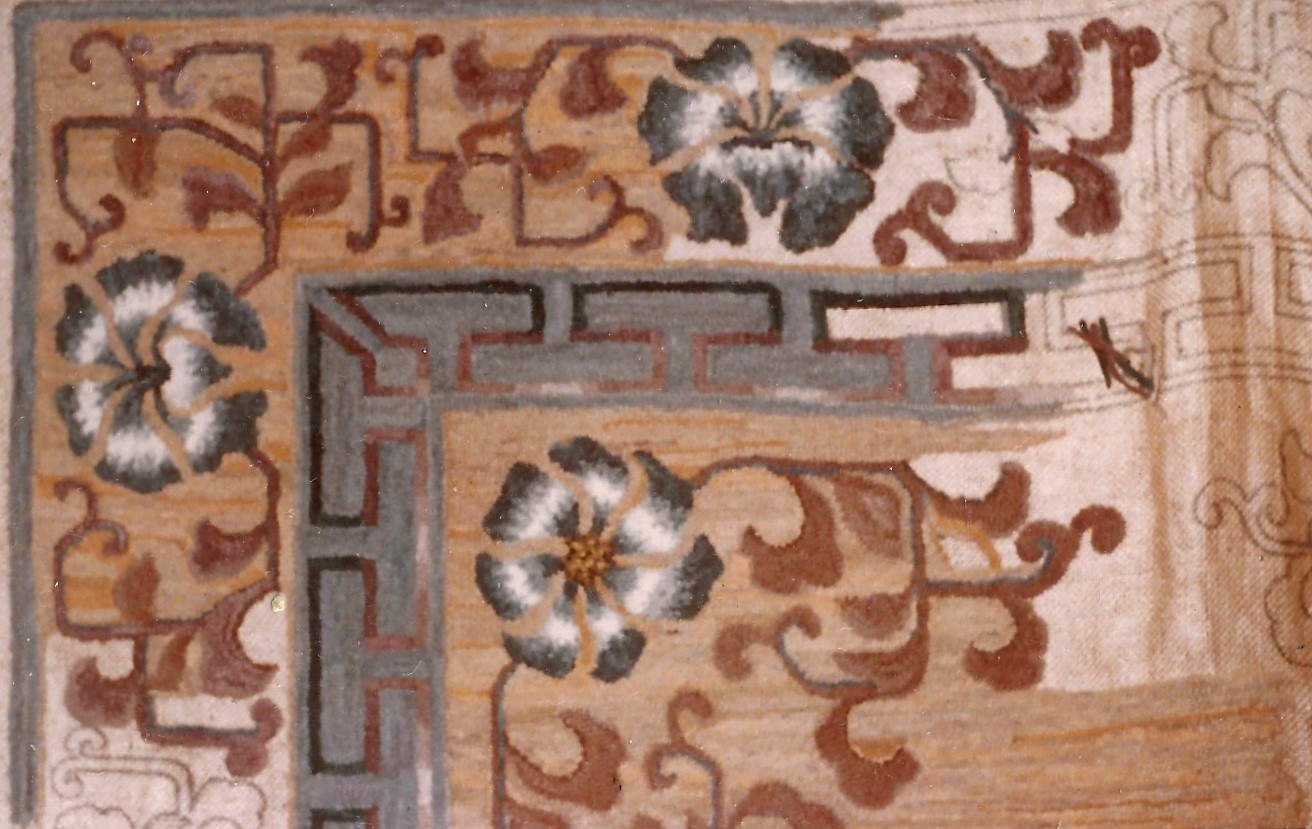 Please Note–the photos of these rugs are from the notebooks and archives of Joan Moshimer. Â There are no names of who hooked the rug. Â This is available in other sizes–see website