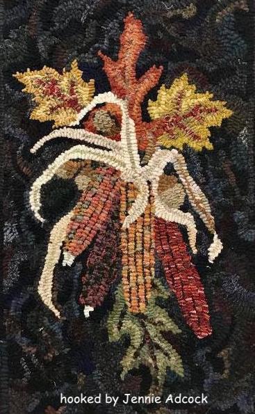 *rug with yellow background was hooked by Pat Laska. Some more lovely examples by Jennie Adcock and Janis Ault. Other in the frame, is from the archives of Joan Moshimer, no names are available. **we do not kit our patterns.
