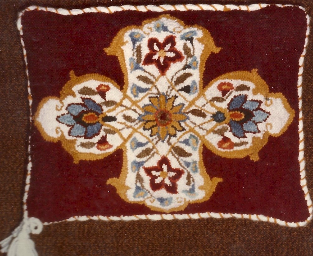 This wonderful small oriental pattern, Isfahan Square FS73, a Pearl McGown Pattern 14″ x 18″. Make great pillows! Beautiful in any color scheme. Try our dip spots hand dyed wool for shading effects. Embellishments are fun to add, such as Arctic Rays or Metallic Yarn for a 3D effect. Suggested wools from our dyed wools are Soft As Petals, Imari Jade, Winter Grays, Vintage Paisley Red, Yellow Topaz and more! Mix Textured wool with Dyed wool for a complete look. Please click the link to view all our in-stock textures. https://dev.wcushing.com/product-category/textured-wool/