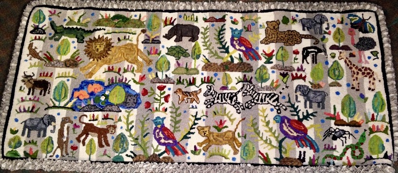W. Cushing is proud to have Nola Hooks and Cactus Needle patterns!   It’s A Jungle Out There, Pattern by Cactus Needle, 24 3/8″ X 54 1/2″.   *Embellishments are fun to add, such as Arctic Rays or Metallic Yarn for a 3D effect.  Try our dip spots hand dyed wool for shading effects.  A great stash reducer!!  We have a large variety of hand dyed wools for your rug such as Gull, Jacob’s Crimson and Indigo, Granite and more!  Mix Textured wool with Dyed wool for a complete look.  Please click the link to view all our in-stock textures.  https://dev.wcushing.com/product-category/textured-wool/