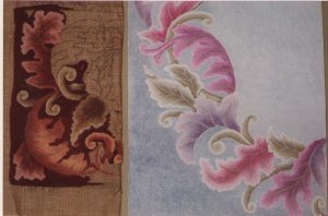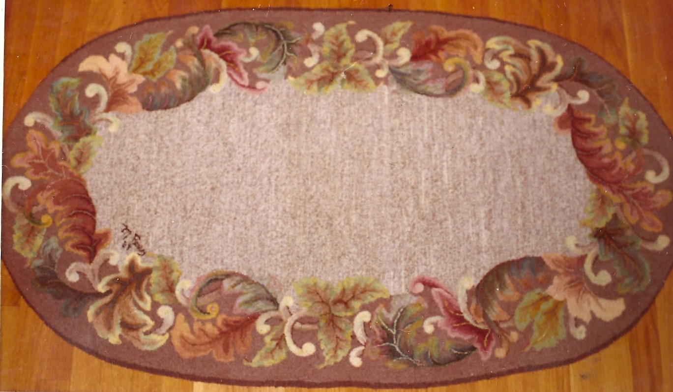 **we do not kit our patterns. Please Note–the photos of these rugs are from the notebooks and archives of Joan Moshimer. There are no names of who hooked the rug.