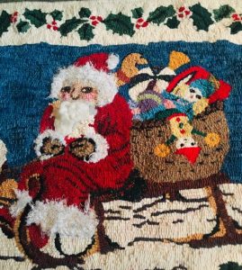 Jolly Olde St. Nick, a Hearth Rug, 27 x 44.  Great Santa rug for the Holiday Season. *This was hooked by Margaret Cowell