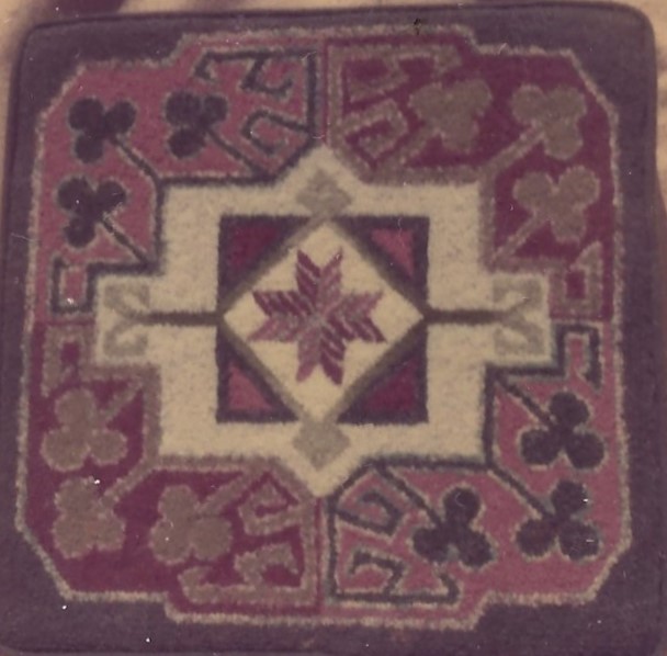 This wonderful oriental pattern, Khiva Square CS334, a Pearl McGown Pattern 14″ x 14″ .  Beautiful in any color scheme.  Try our dip spots hand dyed wool for shading effects.   This pattern is adapted from the “Khiva” rug by Pearl McGown…also on our website.  Embellishments are fun to add, such as Arctic Rays or Metallic Yarn for a 3D effect.