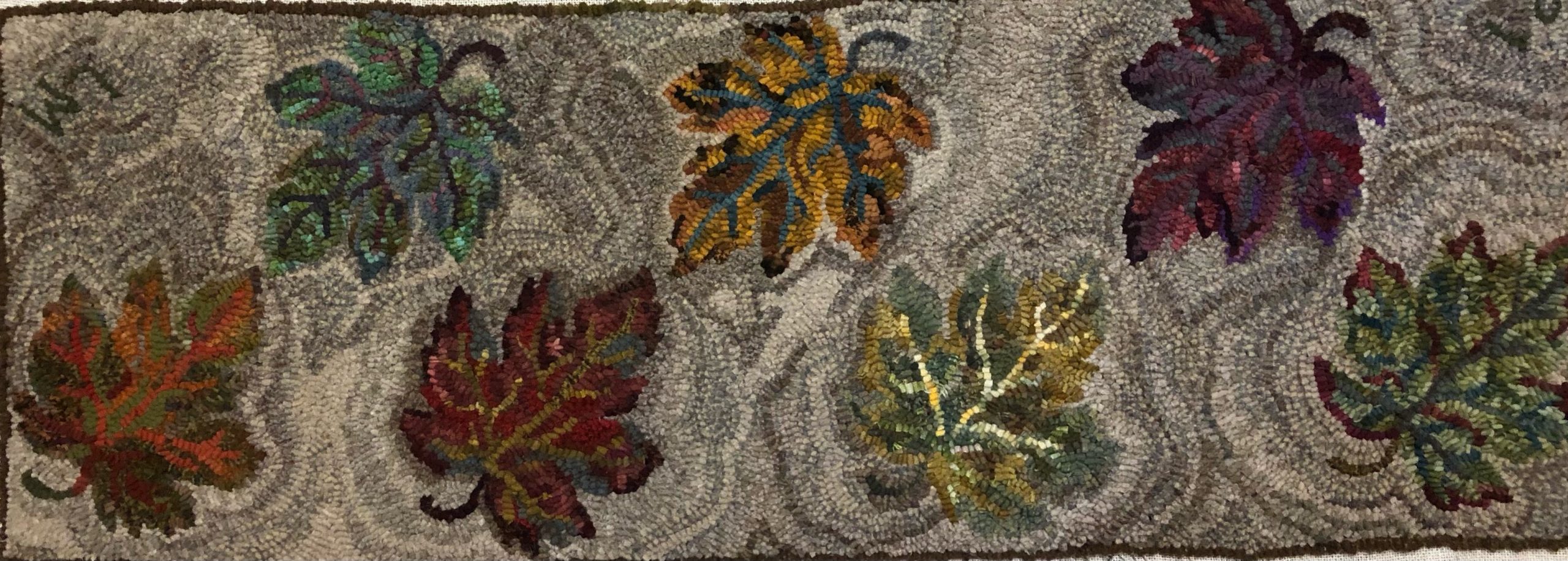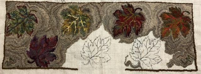 Leaf Peepers Runner–16″ x 46″. Perfect for your Autumn Table and great to use up stash. . .the one picture is being hooked by Lisanne and even the background is stash! Embellishments are fun to add, such as Arctic Rays or Metallic Yarn for a 3D effect. Suggested dyed wools are Autumns Bounty, Fall Pumpkin Patch, Fall Garden, Fantastic Fall and more! Mix Textured wool with Dyed wool for a complete look. Please click the link to view all our in-stock textures. https://dev.wcushing.com/product-category/textured-wool/