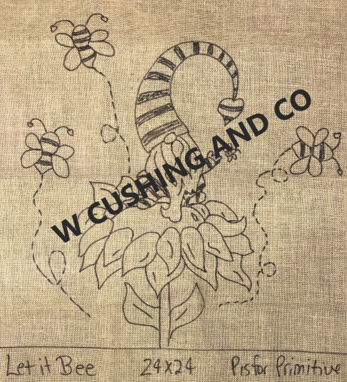Let It Bee, August Gnome Of the Month, 2021, 24 x 24 by Lisanne Miller. . .P is For Primitive. Size is 24 x 24 on our best linen. *Embellishments such as Arctic Rays, Fur, Roving, Burly Spun or Metallic Yarn for a 3D effect to add to your pattern! Perfect way to be creative! Some wools to try are Granite, Imari Gold, Candy Corn, Shades of Sepia, Grassy Knoll and more! Mix Textured wool with Dyed wool for a complete look. Please click the link to view all our in-stock textures. https://dev.wcushing.com/product-category/textured-wool/