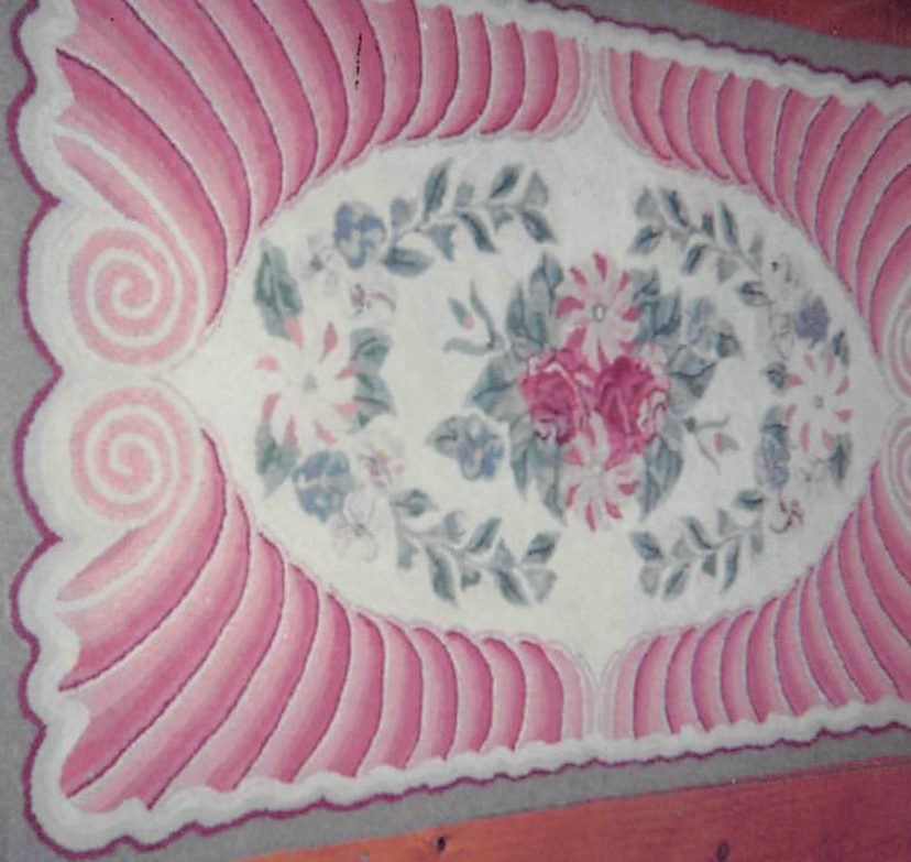 This unique floral rug is Maine Scroll by Pearl McGown OSV 75 33″ x 53″.   It is a beautiful floral that embellishments are fun to add, such as Arctic Rays or Metallic Yarn for a 3D effect.  Try our dip spots hand dyed wool for shading effects.  We have a large variety of hand dyed wools for your rug such as Copley Square, Jacob’s Wine, Imari Jade and more!  Mix Textured wool with Dyed wool for a complete look.  Please click the link to view all our in-stock textures.  https://dev.wcushing.com/product-category/textured-wool/