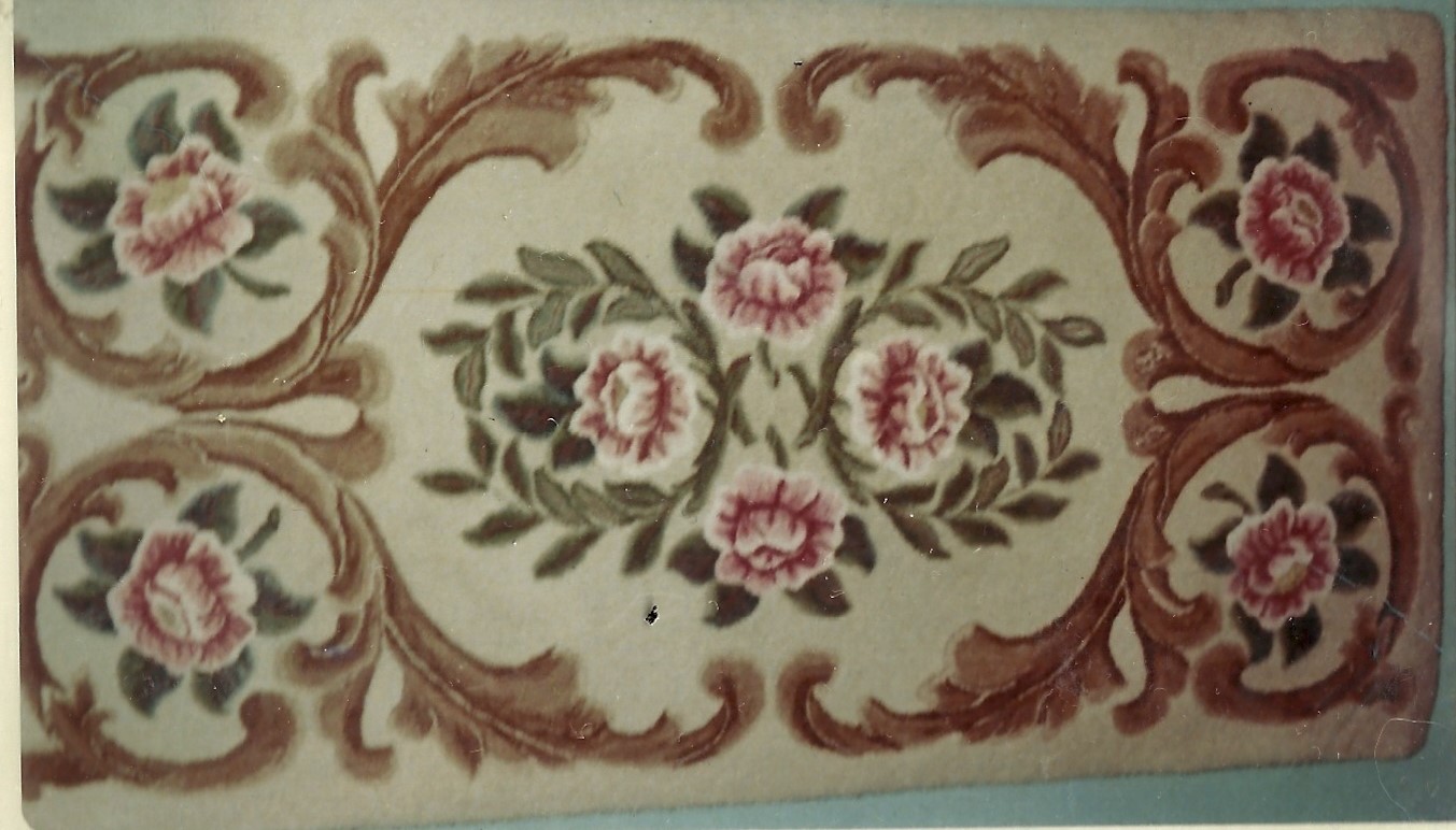 This beautiful rug is McKay Scroll by Pearl McGown OSV 288 34″ x 66″ . It is a beautiful floral that embellishments are fun to add, such as Arctic Rays or Metallic Yarn for a 3D effect. Try our dip spots hand dyed wool for shading effects. We have a large variety of hand dyed wools for your rug such as Copley Square, Better Than Roses, Jacob’s Peach, Raspberry Burst and more! Mix Textured wool with Dyed wool for a complete look. Please click the link to view all our in-stock textures. https://dev.wcushing.com/product-category/textured-wool/