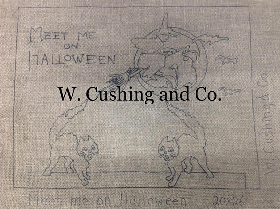Meet Me On Halloween, 20 x 26, Vintage Postcard Pattern From Joan Moshimer’s Studio