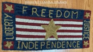M-443 Memorial Star Mat 14″ x 32″ on linen. Pattern by Joan Moshimer. A great vintage welcome mat. Perfect for the patriotic spirit. Check out Fireworks, Goldenrod and Best of Blue from our dyed wools. Mix Textured wool with Dyed wool for a complete look. Please click the link to view all our in-stock textures. https://dev.wcushing.com/product-category/textured-wool/