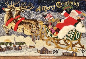 Merry Christmas, To All A Good Night!  24 x 36.  Fabulous Vintage Postcard Pattern and fun to hook! Use our velvet yarns, metallic yarns, and fur embellishments for your Santa or deer!