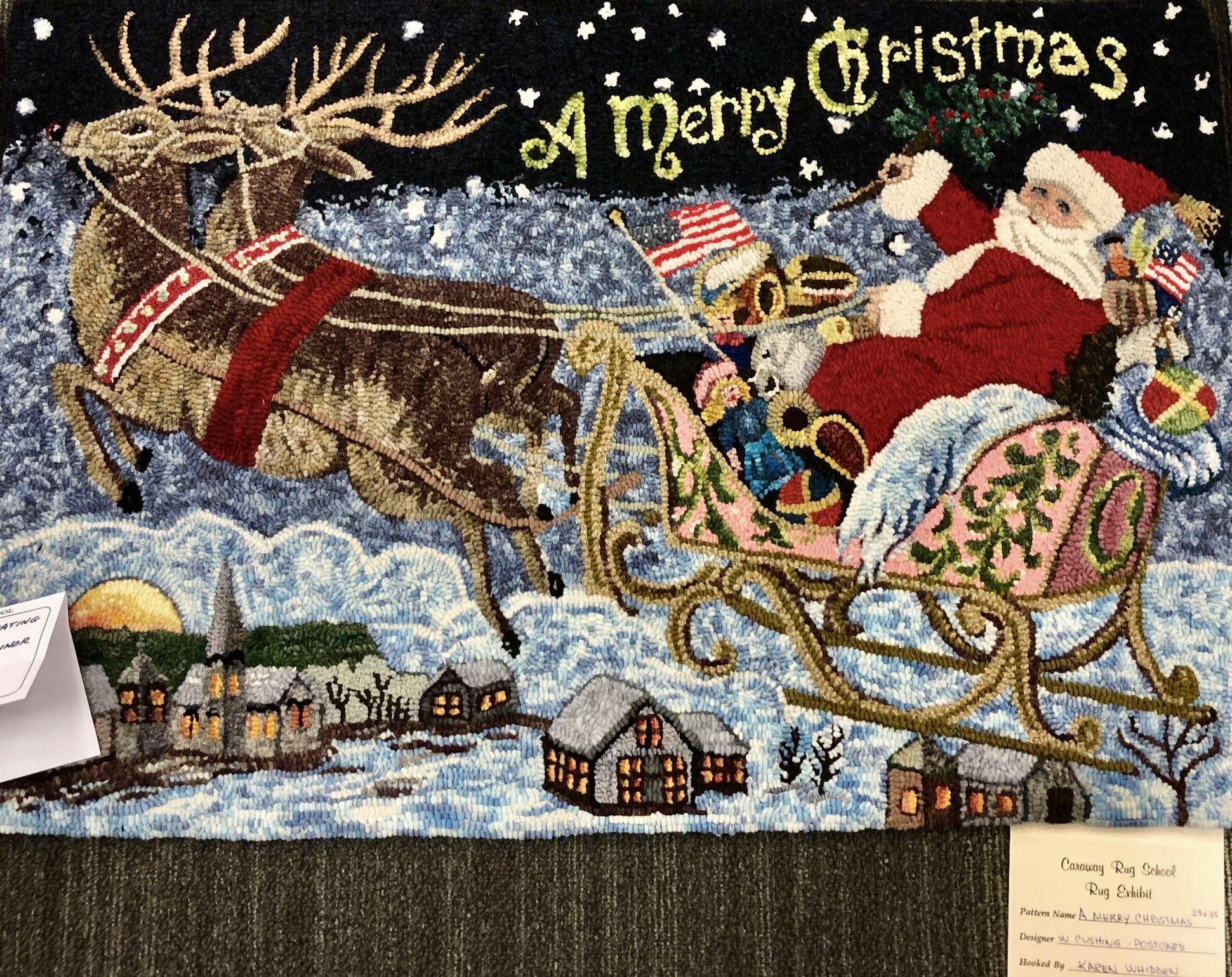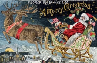 Merry Christmas, To All A Good Night!  24 x 36.  Fabulous Vintage Postcard Pattern and fun to hook! Use our velvet yarns, metallic yarns, and fur embellishments for your Santa or deer!