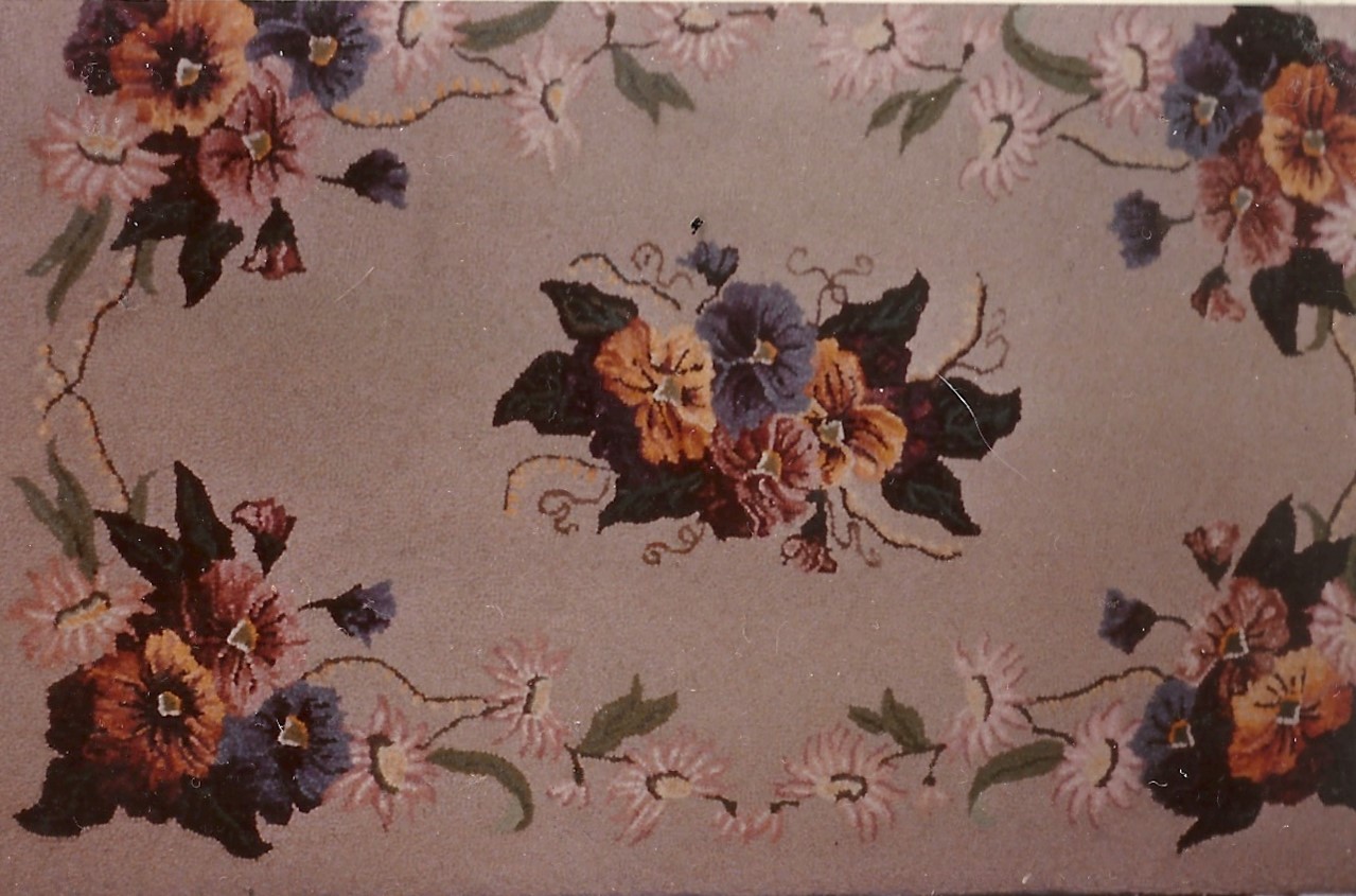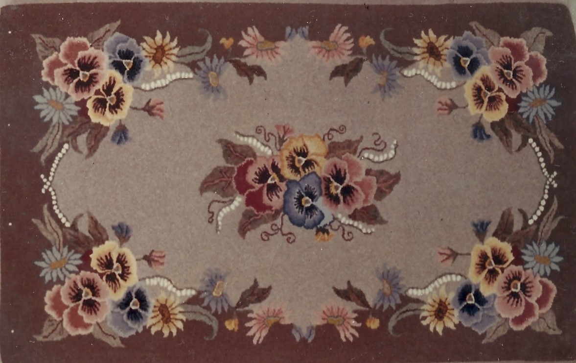 This wonderful rug is Mooney Pansy by Pearl McGown OSV 153 30″ x 48″. It is a beautiful floral that embellishments are fun to add, such as Arctic Rays or Metallic Yarn for a 3D effect. Try our dip spots hand dyed wool for shading effects. We have a large variety of hand dyed wools for your rug such as Copley Square, Jacob’s Peach, Perky Pansy, Jacob’s Indigo and more!