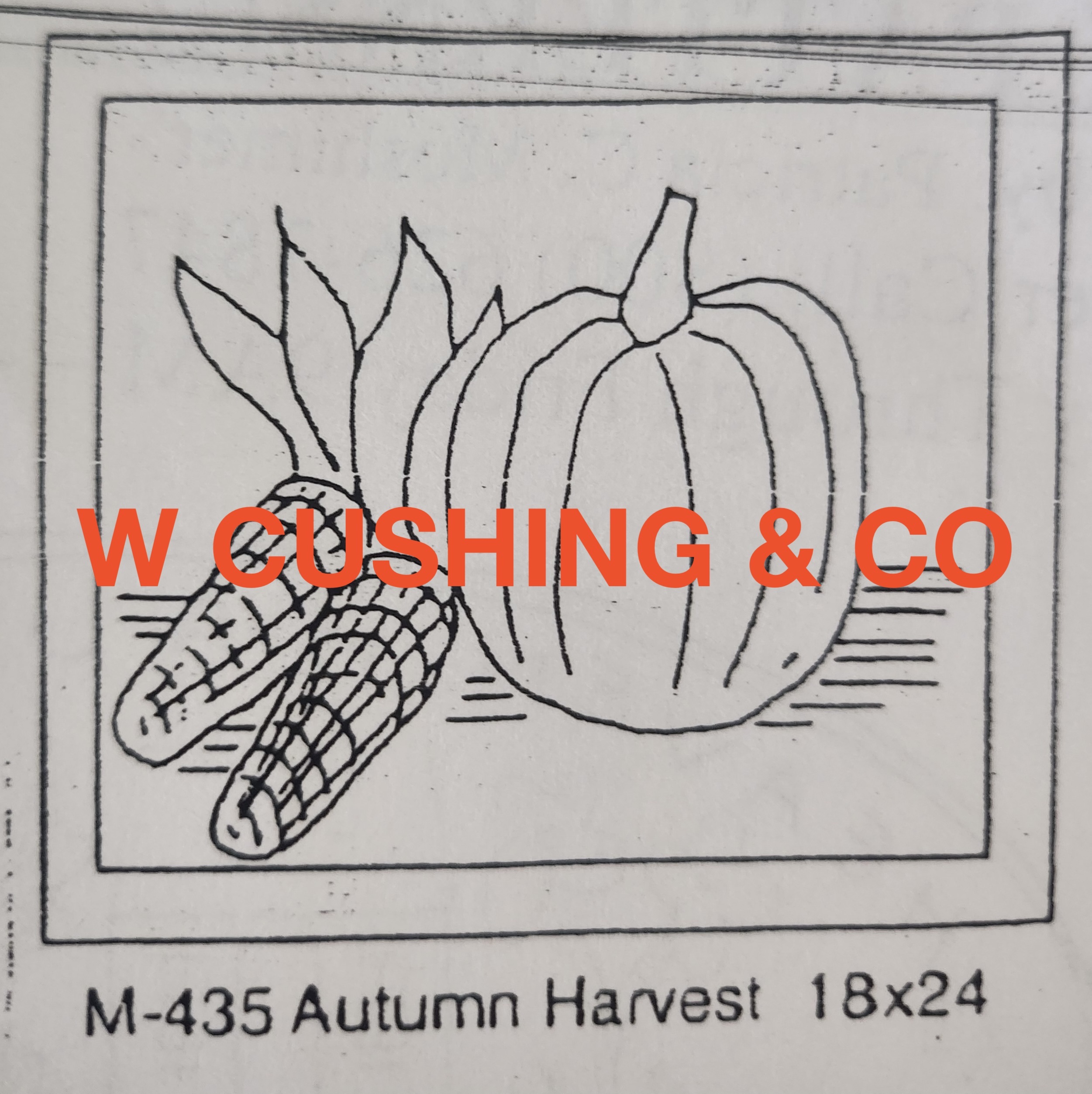 AUTUMN HARVEST, 18 X 24, wonderful pattern for your leftovers. . .  or for any fall decor!  *Embellishments such as Velvets, Arctic Rays, Fur, Roving, Burly Spun or Metallic Yarn for a 3D effect to add to your pattern!  The perfect way to be creative!  Try our dip spots hand dyed wool for shading effects.  We have a large variety of hand dyed wools for your rug such as our Imari Series and our Jacob’s line.  Mix Textured wool with Dyed wool for a complete look.  Please click the link to view all our in-stock textures.  https://dev.wcushing.com/product-category/textured-wool/