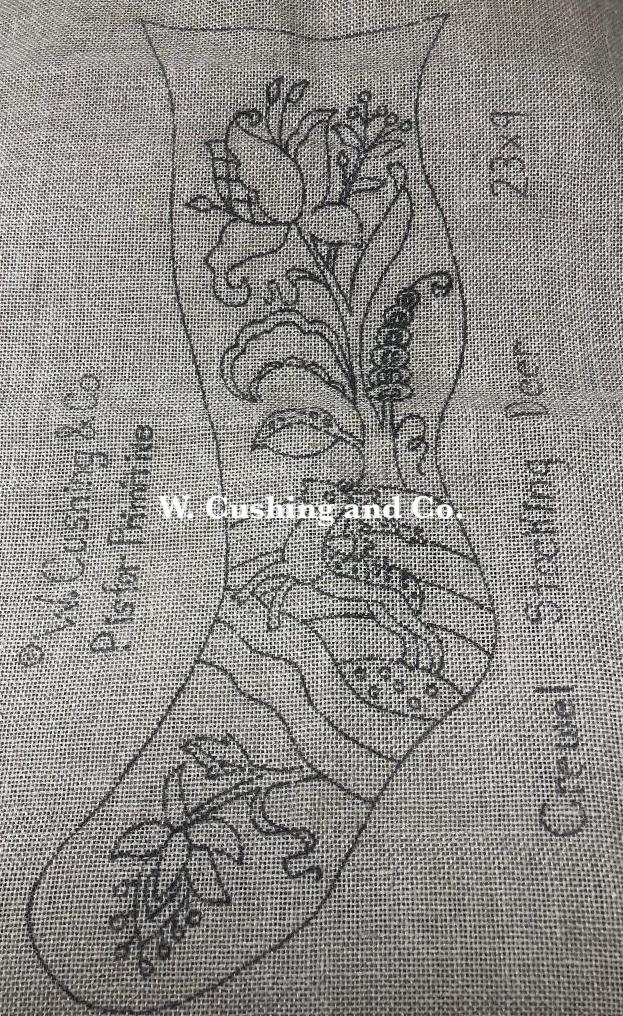 The newest pattern–Crewel Stocking – Deer, 23″ x 9″. The colorways are endless! You can combine wool and one of our velvets, use two velvets. Add fur, or make it Christmas or Spring themed! Embellishments are fun to add, such as Arctic Rays or Metallic Yarn for a 3D effect.