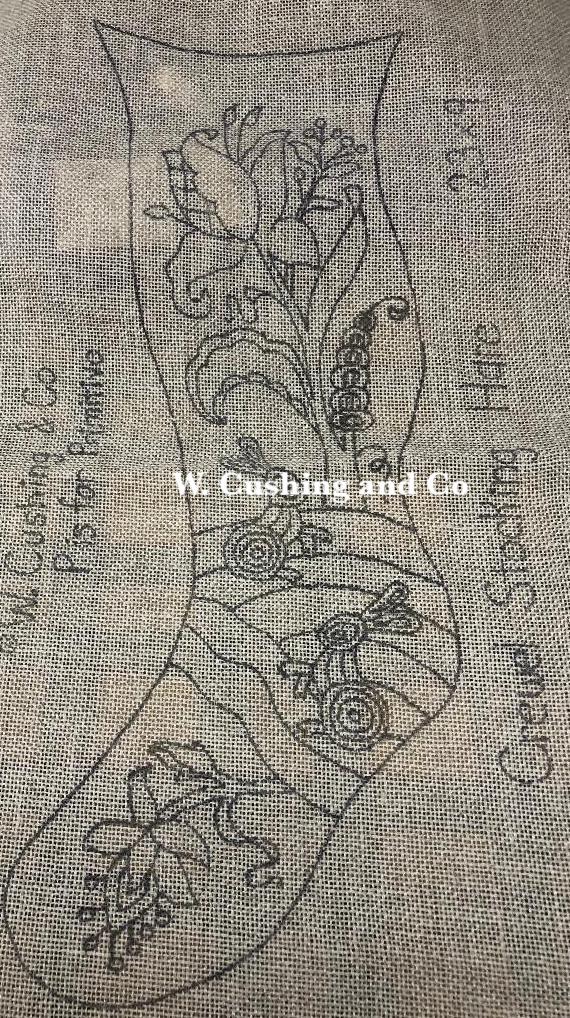 The newest pattern–Crewel Stocking – Hare, 23″ x 9″.  The colorways are endless! You can combine wool and one of our velvets, use two velvets. Add fur, or make it Christmas or Spring themed! Embellishments are fun to add, such as Arctic Rays or Metallic Yarn for a 3D effect.