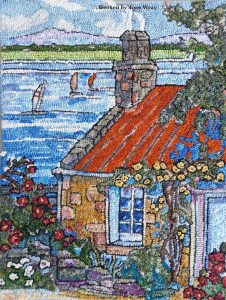 Storybook Roses by the Sea, 24 x 18, based on the artwork of Alida Akers…Part of the Storybook Cottage Series. Embellishments are fun to add, such as Arctic Rays or Metallic Yarn for a 3D effect.