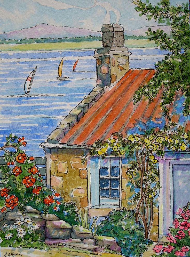 Storybook Roses by the Sea, 24 x 18, based on the artwork of Alida Akers…Part of the Storybook Cottage Series. Embellishments are fun to add, such as Arctic Rays or Metallic Yarn for a 3D effect.