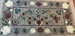 This wonderful vintage rug is just wonderful to hook using any color palette, brights, neutrals or what is leftover in your stash! Perfect for a bed rug for a day bed. No. 60, 38″ x 70″, Ralph Burnham Pattern No. 60 a fantastic floral rug and one to add to your collection to hook! *Embellishments such as Arctic Rays, Fur, Roving, Burly Spun or Metallic Yarn for a 3D effect to add to your pattern! Perfect way to be creative! This is for PATTERN ONLY. Some great dyed wools to use would be our Razzle Dazzle, Raspberry Sorbet, Sapphire, Fields of Green, Mother of Pearl or even our Aurora! Mix Textured wool with Dyed wool for a complete look. Please click the link to view all our in-stock textures. https://dev.wcushing.com/product-category/textured-wool/