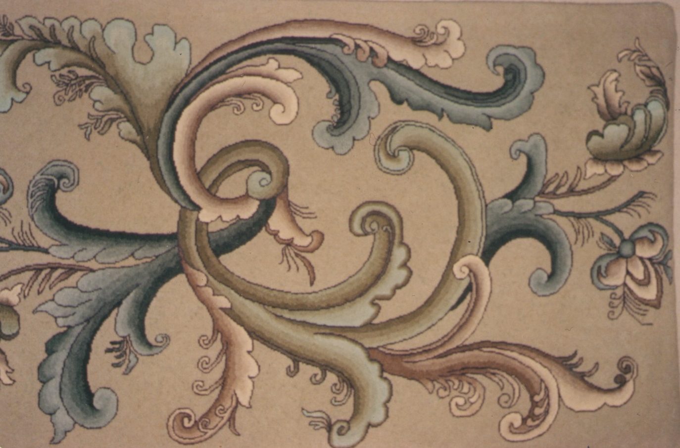 Norwegian Flair by Pearl McGown, OSV 769 27 1/2 x 47. It is a beautiful floral that embellishments are fun to add, such as Arctic Rays or Metallic Yarn for a 3D effect. Try our dip spots hand dyed wool for shading effects. We have a large variety of hand dyed wools for your rug such as Soft as Petals, Jacob’s Peach, Jacob’s Green Blue and more! Mix Textured wool with Dyed wool for a complete look. Please click the link to view all our in-stock textures. https://dev.wcushing.com/product-category/textured-wool/