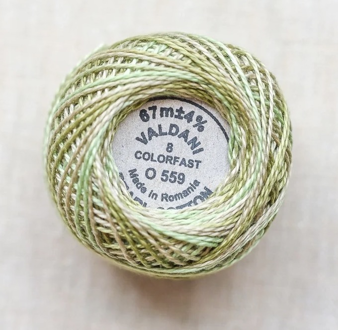 Beautiful Valdani Size #8 threads are hand dyed by highly skilled artisans in customized designer colors. This overdyed thread is a highly decorative, double twisted, indivisible long staple 100% cotton thread that has been double-dyed to achieve an amazing depth and profusion to colors. These threads are great for punch needle, sewing, embroidery and applique. This listing is for 1 skein of thread.