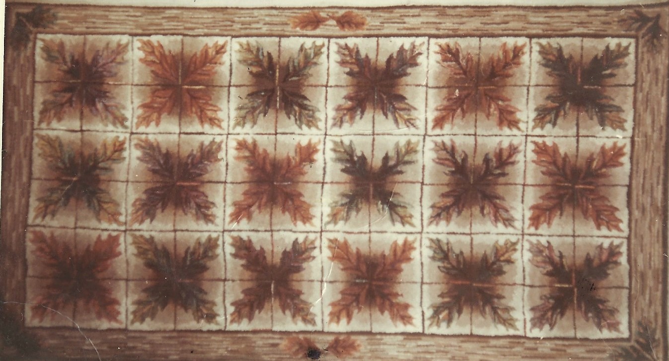 **we do not kit our patterns. Please Note–the photos of these rugs are from the notebooks and archives of Joan Moshimer. There are no names of who hooked the rug.